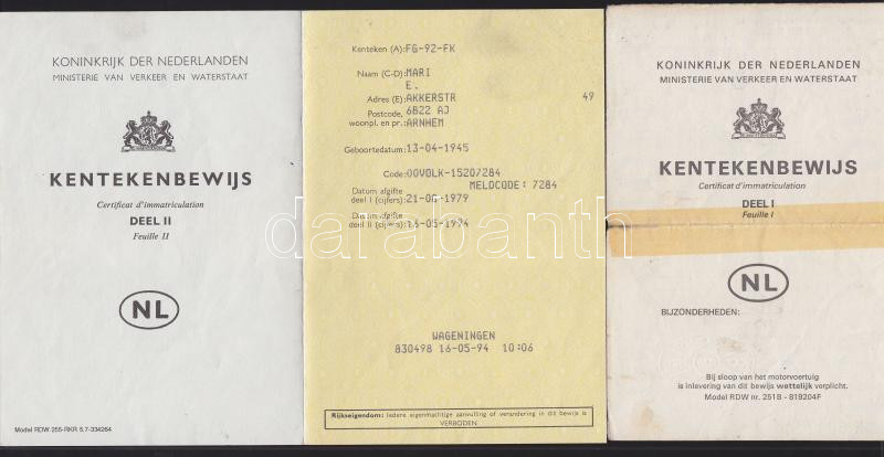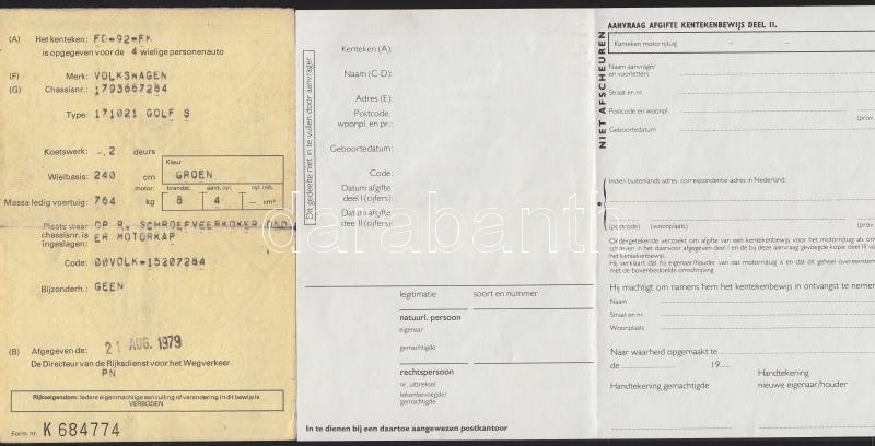 Leírás: Hollandia 1979 Gépjármű forgalmi engedély