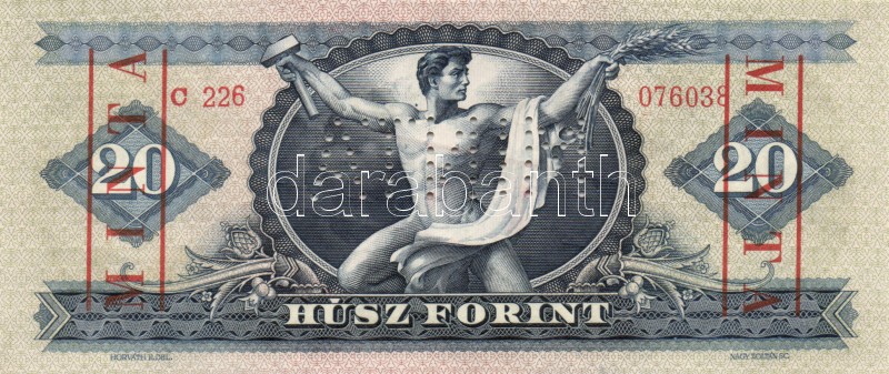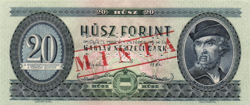 Leírás: 1962. 20Ft "MINTA" perforációval és felülnyomással, C + számozás T:I