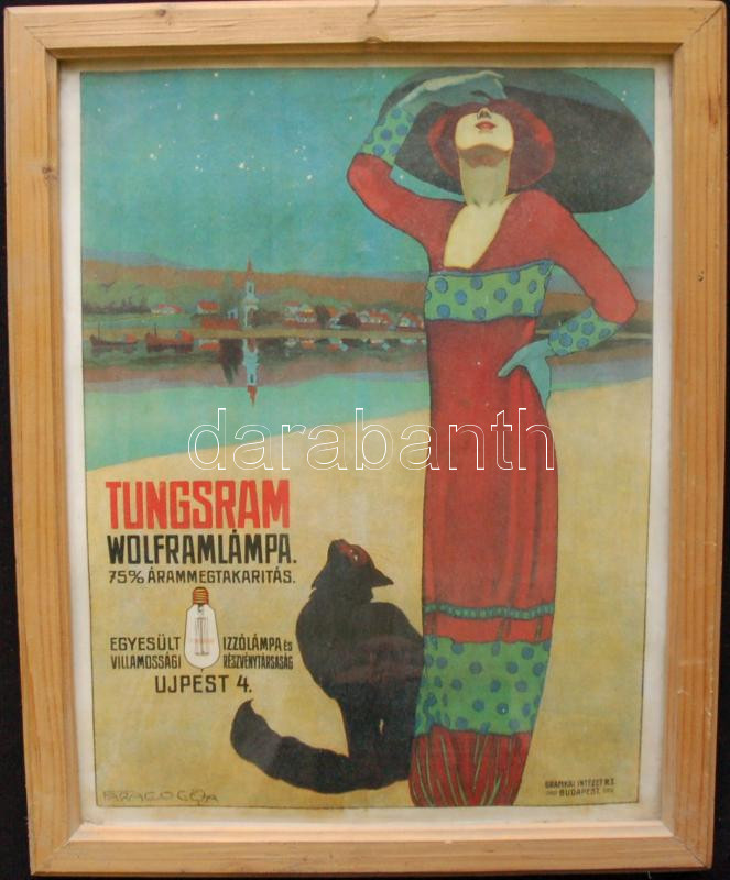 Cca 1906 Tungsram plakát, üvegezett keretben