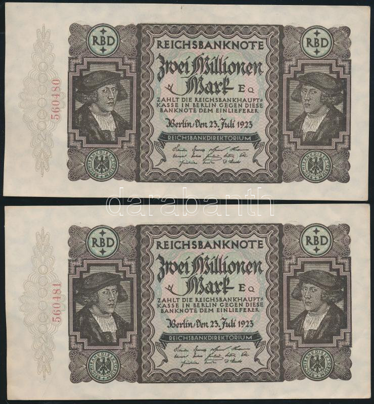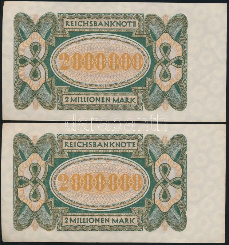 Német Birodalom/Weimari Köztársaság/Berlin 1923.7.23. 2.000.000M (2x) egymás utáni sorszámmal T:II