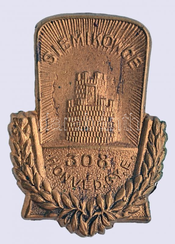 Leírás: Osztrák-Magyar Monarchia ~1917. "308. Honvéd Gyalogezred SIEMIKOWCE" tombak sapkajelvény (38x28mm) javított tű T:2-