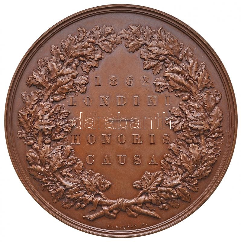 Nagy-Britannia 1862. "Londoni Világkiállítás" Br díjérme "1862 - LONDINI - HONORIS - CAUSA", a peremen: "MONTESSUY & CHOMER, CLASS XX". Szign.: Leonard Charles Wyon (77mm) T:2 kis ph.