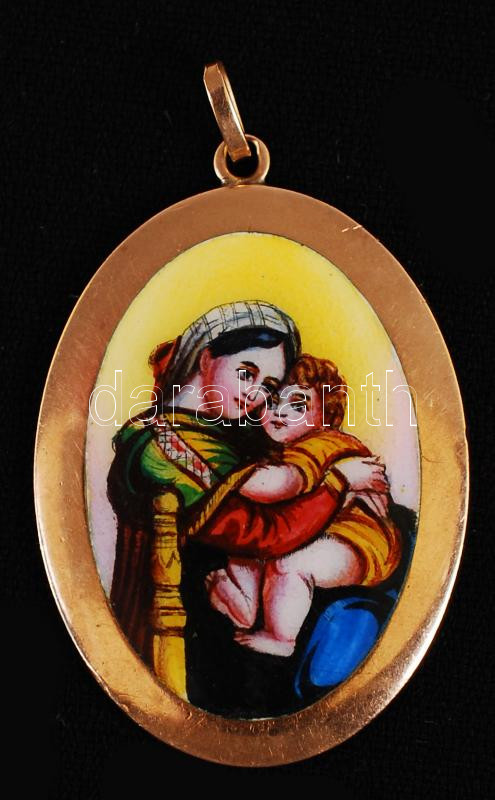 'Sancta Maria Mater Dei Ora pro nobis!' 14 K arany (Au), Szűz Máriát és Jézust ábrázoló medál, hátoldalán pici lepattanás, jelzés nélkül, nettó: 11.21g