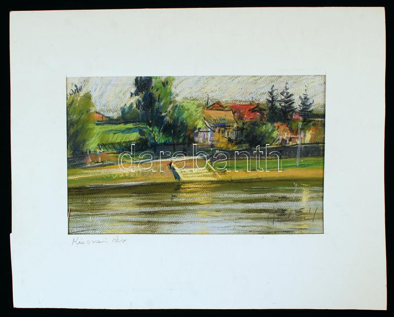 Leírás: Andráskó István (1930-): Kisoroszi rév. Pasztell, papír, jelzett, 21×34 cm