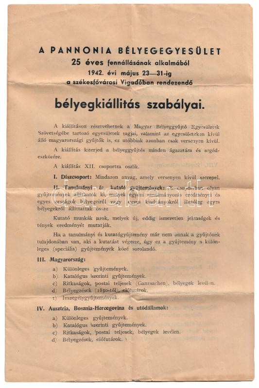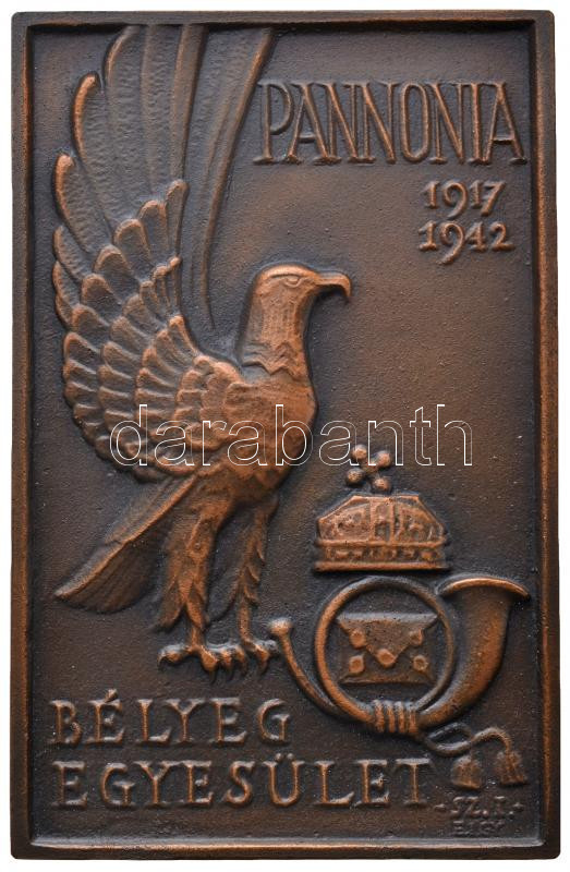 1942. "Pannonia Bélyeg Egyesület" Br plakett eredeti dísztokban, a bélyegkiállítás szabályainak leírásával. Szign.: Sz.I. - E.I.Gy. (71x111mm) T:2