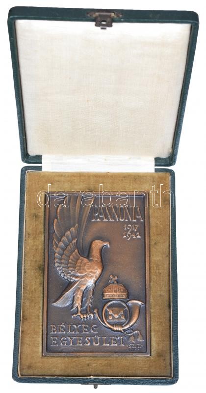 1942. "Pannonia Bélyeg Egyesület" Br plakett eredeti dísztokban, a bél...