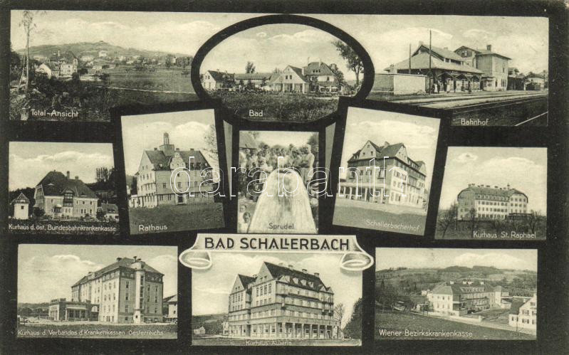 Leírás: Bad Schallerbach, Wiener Bezirkskrankenkasse, Kurhaus, Schallerbacherhof, Bahnhof / bank, spa, sanatorium, railway station (EK)