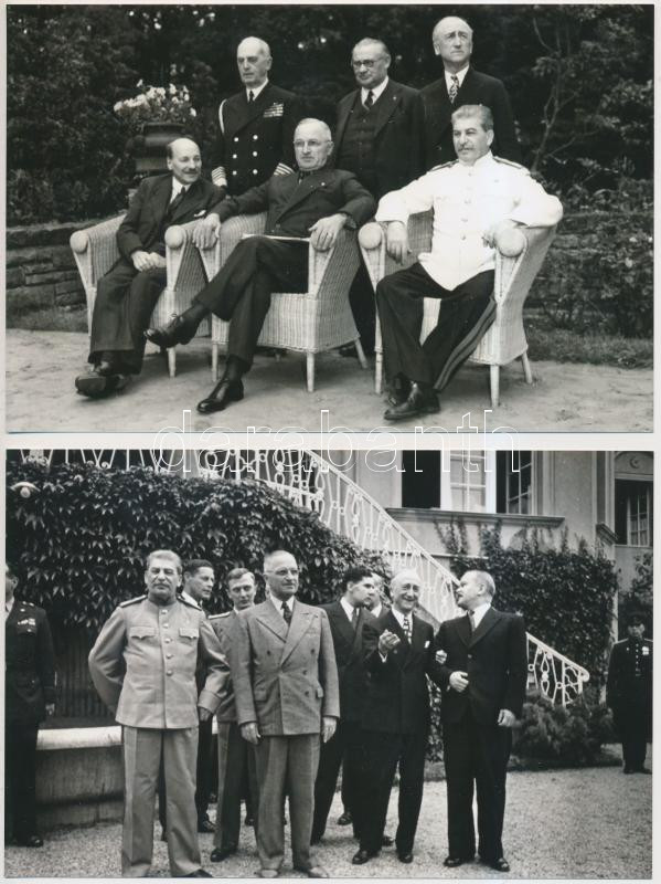 1945 A potsdami konferencia résztvevői(többek között Truman, Clement Attlee, Sztálin), képek a háborús pusztításokról Ausztriában, 15 db későbbi nagyítás, 15x10 cm