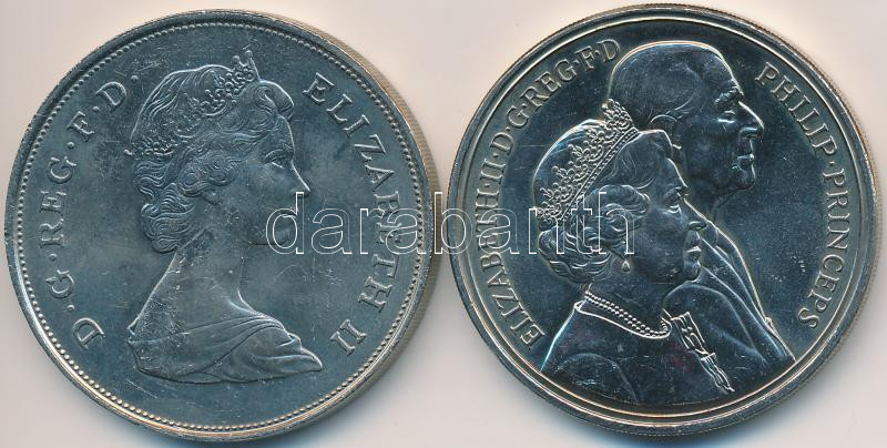 Nagy-Britannia 1981. 25P Cu-Ni "Károly és Diana esküvője" + 1997. 5Ł Cu-Ni "Erzsébet és Fülöp-aranylakodalom" T:2,BU