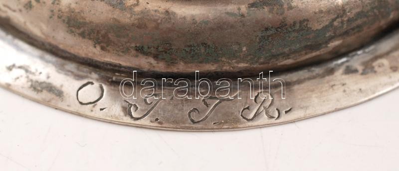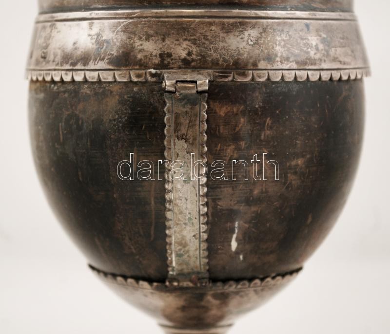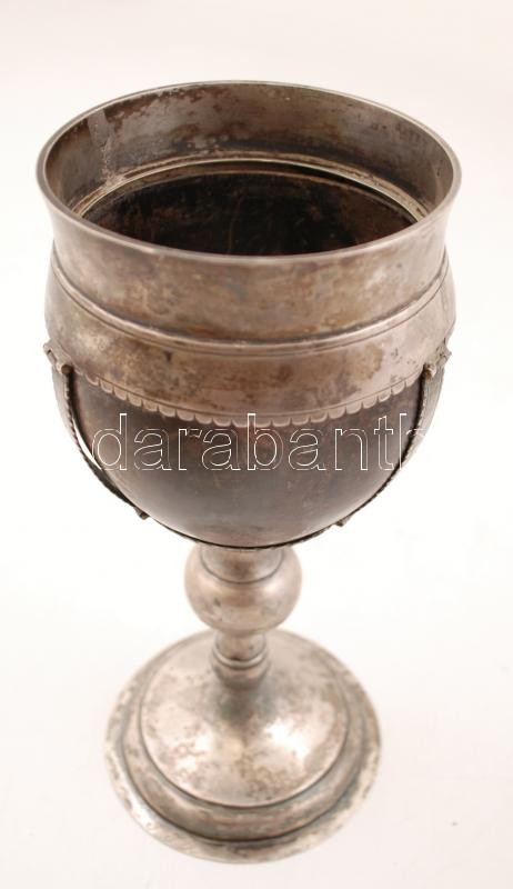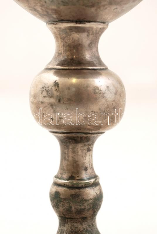 Antik ezüst (Ag.) kehely, jelzett (13 lat, O.J.T.R), mesterjeggyel (SZL), szaru betéttel, korának megfelelő állapotban, m:23,5 cm, bruttó:397 g Before 1867 Silver chalice with horn inlay, hallmarked with 13 lot purity mark and Sz.L. maker's mark, 24 cm, br: 397 gr