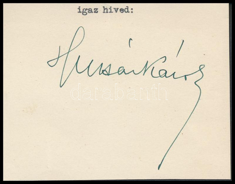 Huszár Károly (1882-1941) politikus, miniszterelnök saját kezű aláírá...