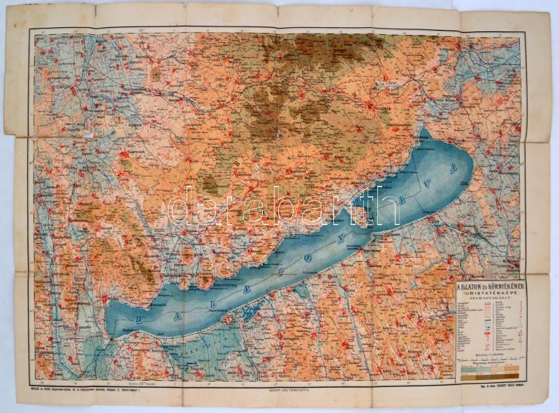 cca 1910 A Balaton és környékének turistatérképe, jelmagyarázattal, 1:...