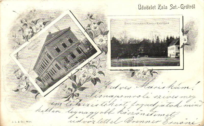Leírás: Zalaszentgrót, Állami elemi iskola, Báró Harkányi Károly kastélya, floral (EB)