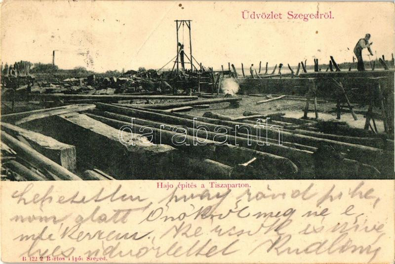 Szeged, Hajó építés a Tisza parton, kiadja Bartos Lipót (b)