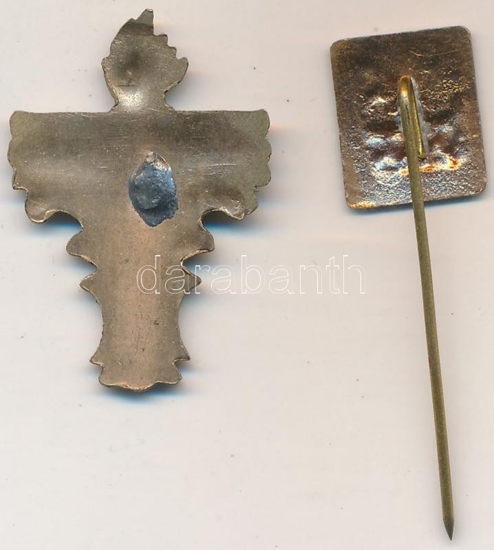 Leírás: ~1930. "Trianon" festett Br kitűző, tű letört (31x21mm) + "Erdély címere" zománcozott fém kitűző T:2