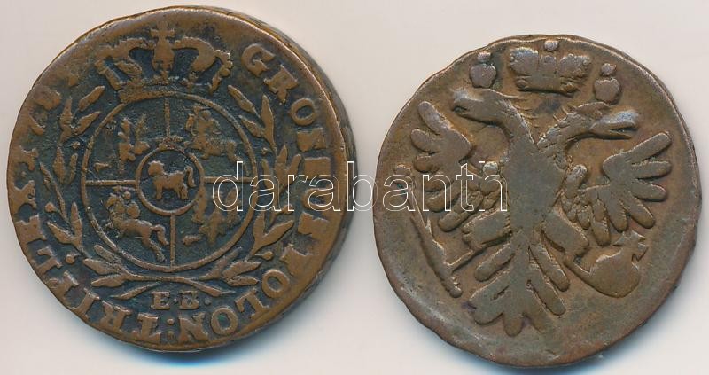 Vegyes: Lengyel Királyság 1782EB 3Gr Cu "II. Szaniszló Ágost" + Orosz Birodalom 1740. 1D Cu T:3