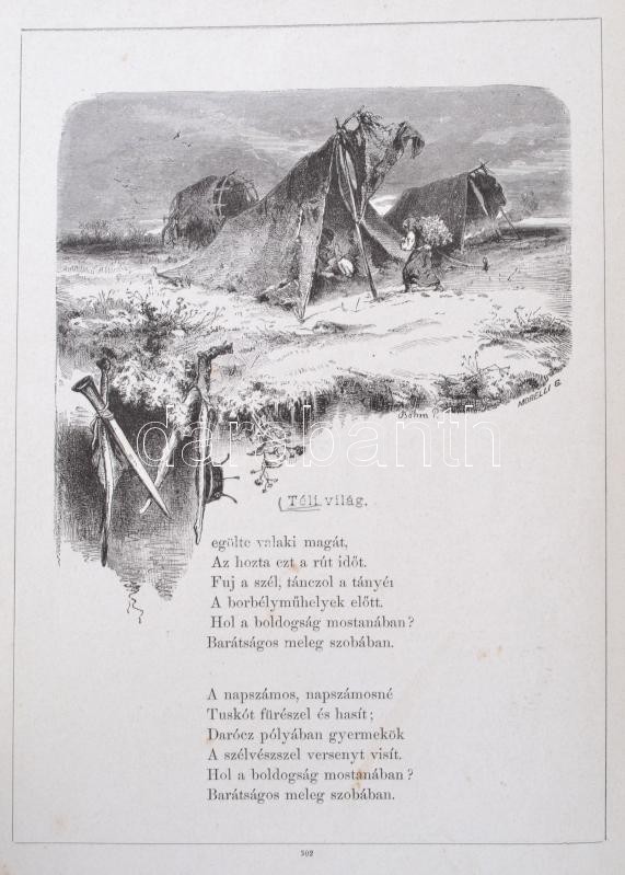 Petőfi Sándor összes költeményei. Hazai művészek rajzaival díszített képes kiadás. Bp., 1878, Athenaeum. Gazdagon díszített, aranyozott vászonkötésben, a kötés részben elválik, szakadásokkal.