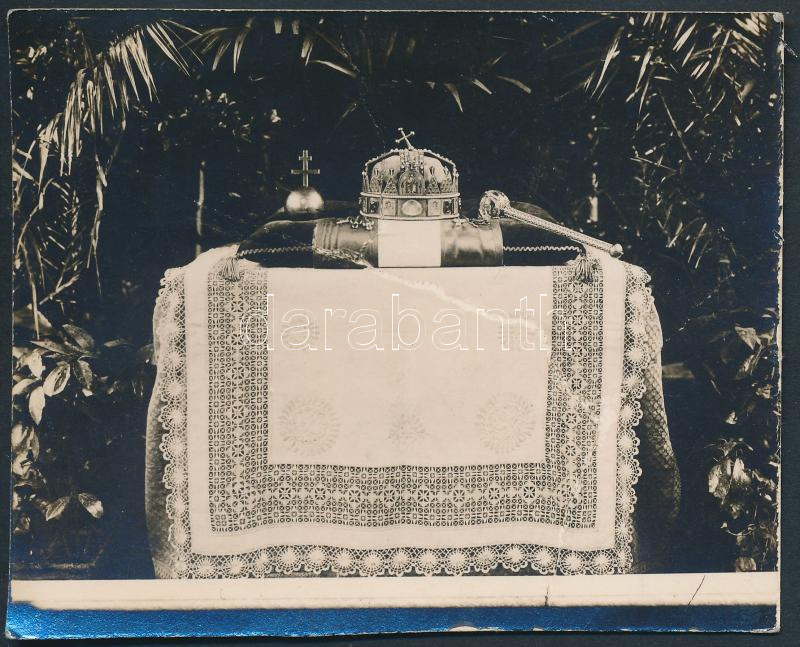 cca 1920 Szent Korona, jogar és országalma fotó, 7x9cm https://www.darabanth.com/hu/257-Gyorsarveres/257.0/Festmeny-mutargy-papirregiseg-egyeb/Foto~19/cca-1920-Szent-Korona-jogar-es-orszagalma-foto-7x9cm~II1262578