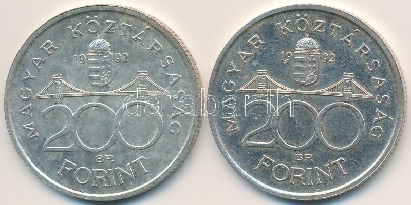 Leírás: 1992. 200Ft Ag "MNB" (2x) T:2,2-