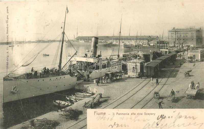 Leírás: Il Pannonia alla riva Szapary / Hungarian steamship