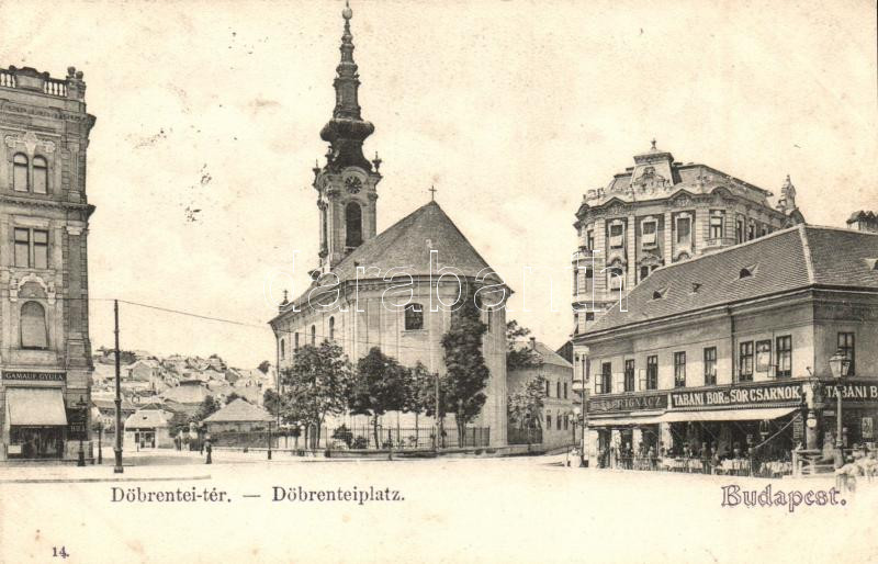 Leírás: Budapest I. Döbrentei tér, Tabáni bor és sörcsarnok, Keller Ignácz és Gamauf Gyula üzlete