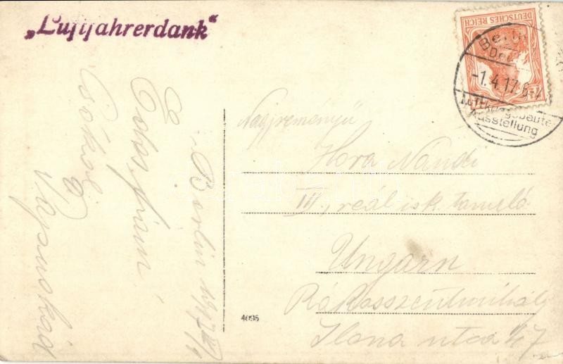 Leírás: 1913 Berlin, Luftkriegsbeute Ausstellung, Luftfahrerdank / Air warfare exhibition, photo. So. Stpl
