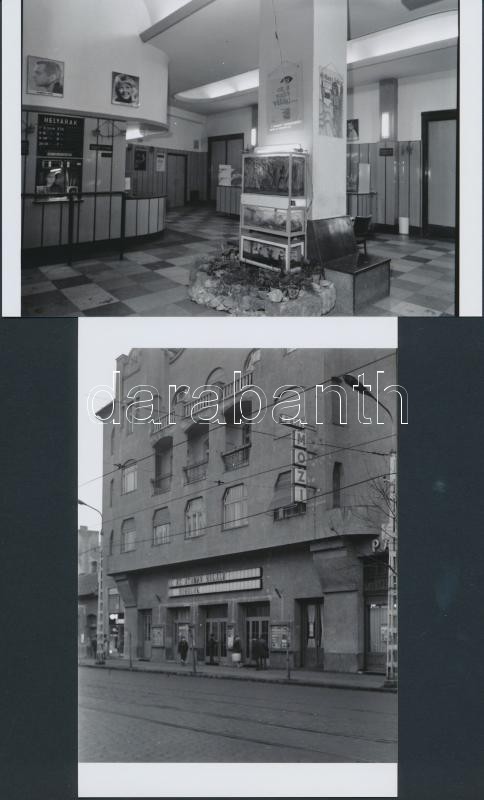 1973 Budapest, FÉNY mozi kívül-belül, 6 db korabeli professzionális felvételről készült modern nagyítás, adatolva a negatívokat nyilvántartó füzetben volt, 10x15 cm