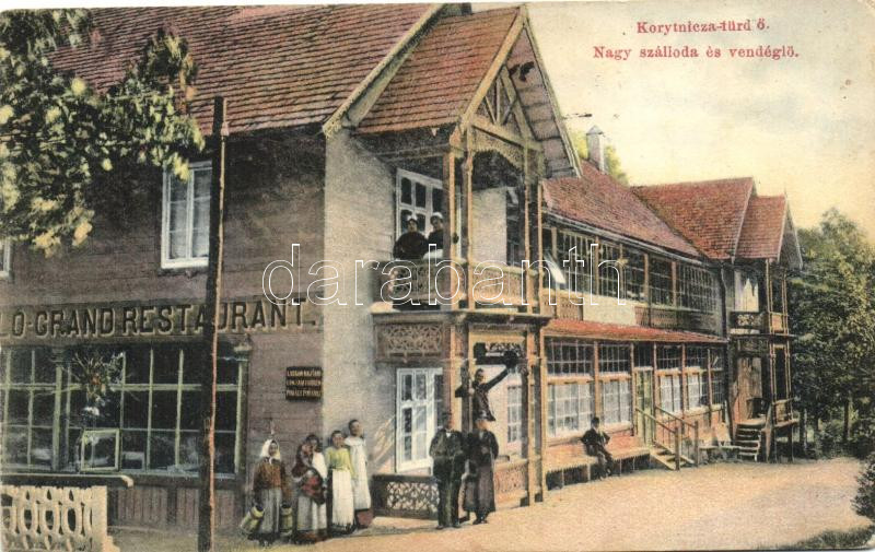 Leírás: Korytnicza-fürdő, Korytnica-kúpele; Nagy szálloda és vendéglő, kiadja Feitzinger Ede No. 795 / Grand Hotel and restaurant (EK)