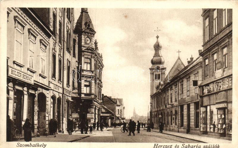 Szombathely, Herczeg és Sabaria szállók, Holzer Bernát kereskedése, Ke... https://www.darabanth.com/hu/264-Gyorsarveres/264.0/Kepeslapok/Magyarorszag~200025/Szombathely-Herczeg-es-Sabaria-szallok-Holzer-Bernat-kereskedese-Kemeny-Jozsef-aruhaza~II1317641