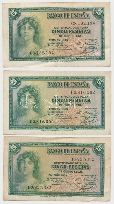 Spain 1931-1935. 5 Pesetas... https://www.darabanth.com/hu/264-Gyorsarveres/264.0/Numizmatika/Kulfoldi-bankjegyek~300010/Spanyolorszag-1931-1935-5P-25P-7x-TIII--Spain-1931-1935-5-Pesetas--25-Pesetas-7x-CF~II1314591