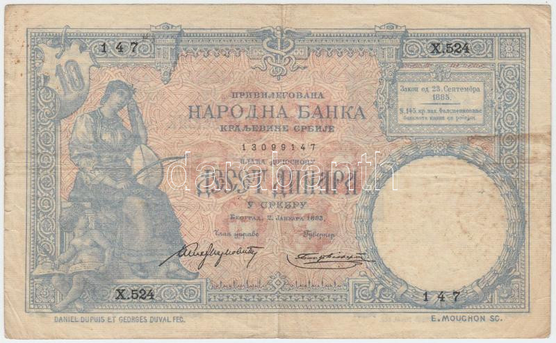 Szerbia 1893. 10D T:III Serbia 1893. 10 Dinara C:F