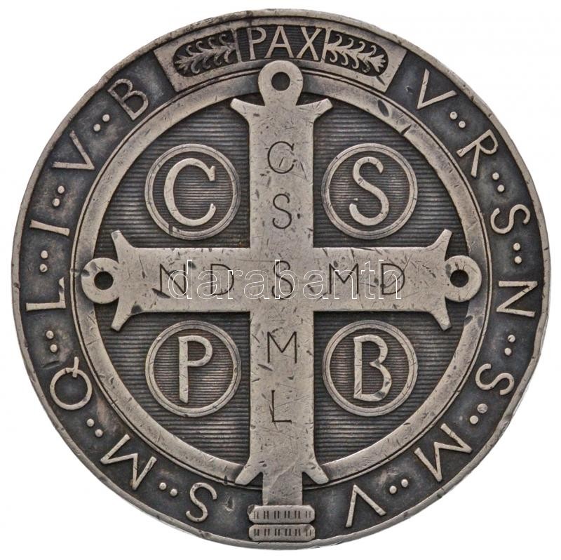 ~1880. "Szent Benedek-medál" jelzetlen Ag vallási érem (32,59g/45mm) T...