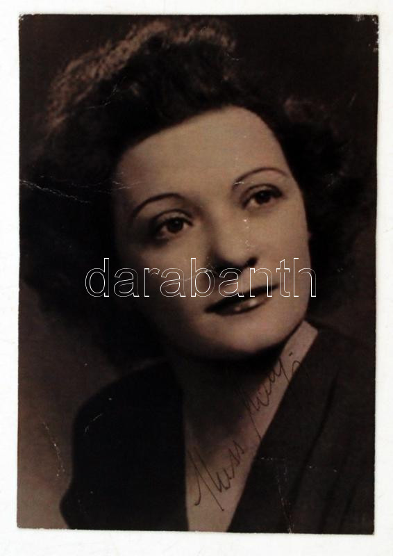 Leírás: Kiss Manyi (1911-1971) színésznő aláírása őt magát ábrázoló fotón