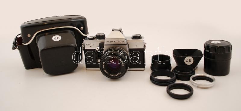 Leírás: Pentacon Praktica MTL 5 24x36 mm kamera Pentacon auto 1:1,8/50 mm objektívvel, hozzá napellenző, közgyűrűsor, bőrtok / Vintage camera with accessories