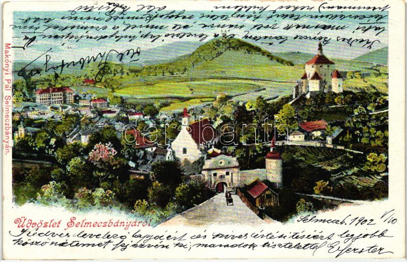 Leírás: Selmecbánya, Banska Stiavnica, Schemnitz, Látkép, kiadja Makónyi Pál