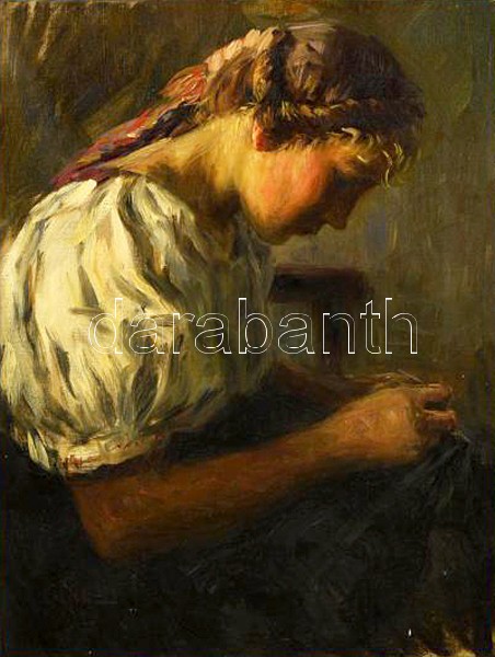 Glatz Oszkár (1872-1958): Parasztlány. Olaj, vászon, jelzett, antik ke...