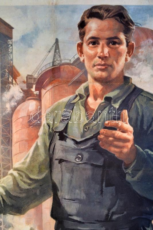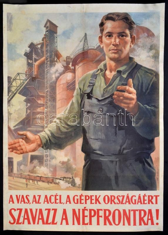 1953 Ék Sándor (1902-1975): A vas és acél országáért szavazz a Népfrontra!, Bp., Szikra-nyomda, restaurált, 84x58 cm. / Hungarian communist propaganda poster, restored, 84x58 cm