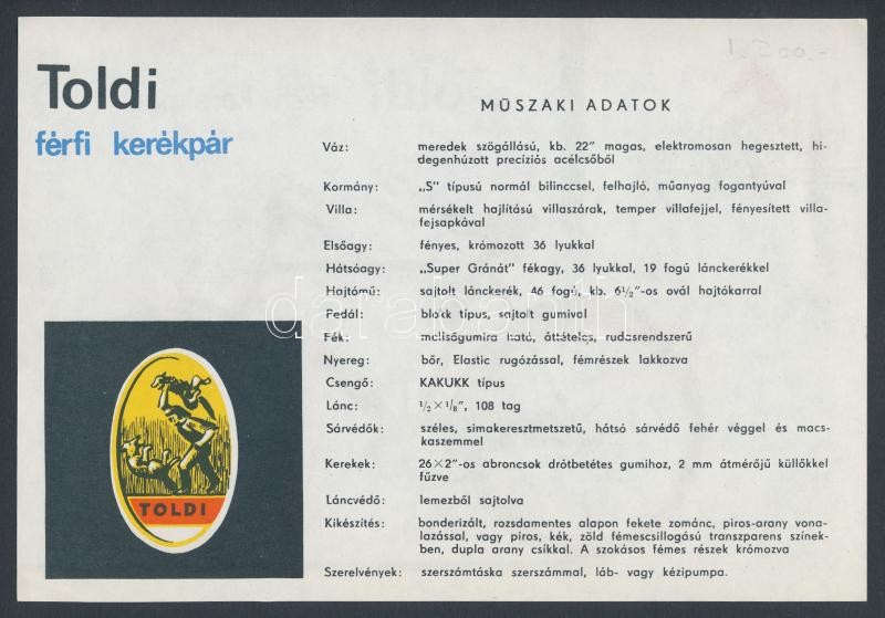 cca 1960 A Csepel Toldi kerékpár műszaki tájékoztatója