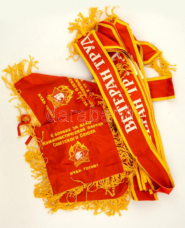 Leírás: 5 db szovjet zászló + mellszalagok, különböző méretben
