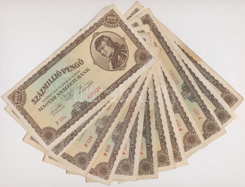 1946. 100.000.000P (30x) T:II,II-,III https://www.darabanth.com/hu/274-Gyorsarveres/274.0/Numizmatika/Magyar-bankjegyek~200011/1946-100000000P-30x-TII-II-III~II1397468