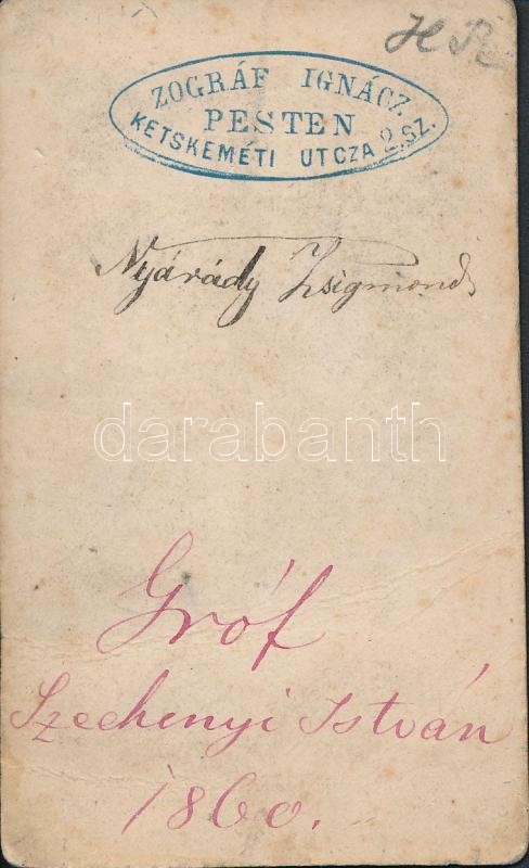 1860 gróf Széchenyi István(1791-1860), fénynyomat Zográf Ignác(Pest) pecsétjével, 10x6 cm