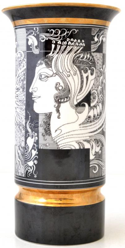 Hollóházi Szász Endre által tervezett mintával díszített porcelán váza...