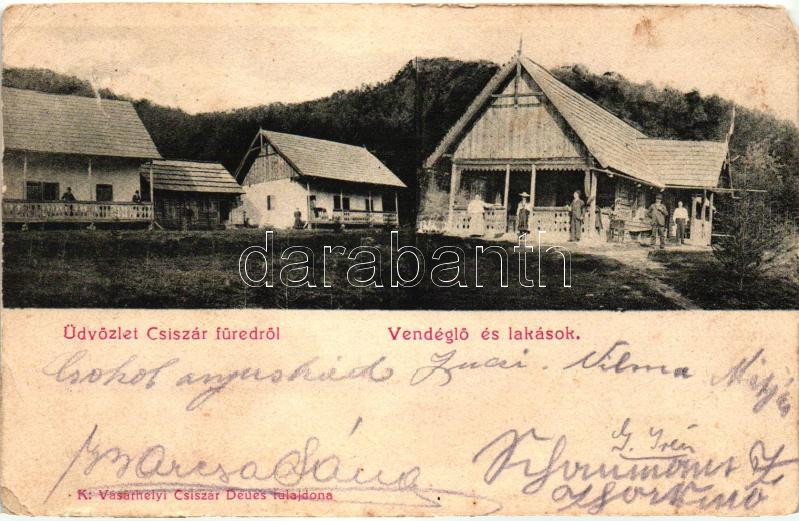 Leírás: Csiszárfürdő, Vendéglő és lakások, kiadja Vásárhelyi Csiszár Dénes / inn, apartments (EM)