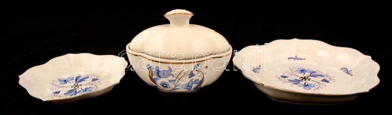 Leírás: Aquincumi porcelán bonbonier, 2 db tálka, kézzel festett, jelzett, hibátlan, összesen 3 db, d: 16 és 22 cm, 13x15 cm