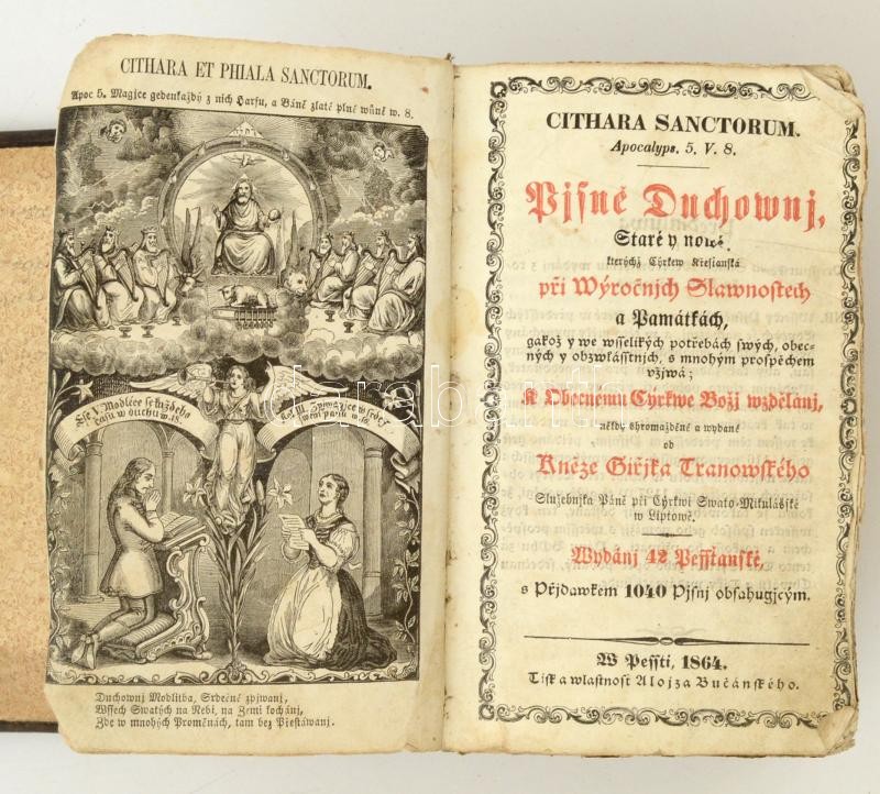 Leírás: Třanovský, Jiří: Cithara sanctorum. Pjsně Duchownj staré y nowé při Wýročnjch Slawnostech ... Pest, 1864, Alojz Bučánský. Kopott bőrkötésben, kötése részben elválik.