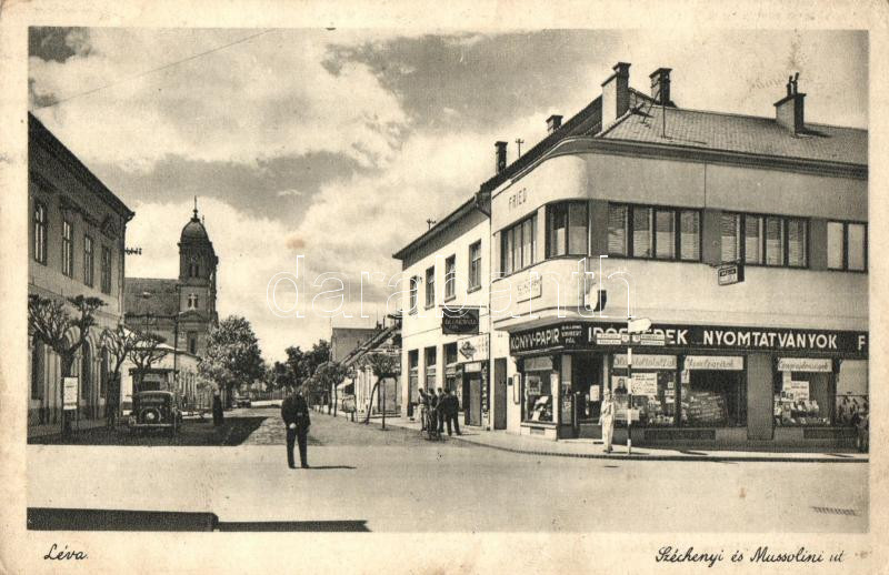 Léva, Levice; Széchenyi és Mussolini utca, Schubert Pál Könyvnyomdája,... https://www.darabanth.com/hu/283-Gyorsarveres/283.0/Kepeslapok/Felvidek~200007/Leva-Levice-Szechenyi-es-Mussolini-utca-Schubert-Pal-Konyvnyomdaja-Fried-haz-streets-s~II1470301