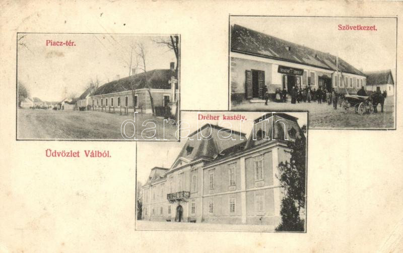 Vál, Vaál; Piac tér, Dréher kastély, Váli fogy. szövetkezet (EK)
