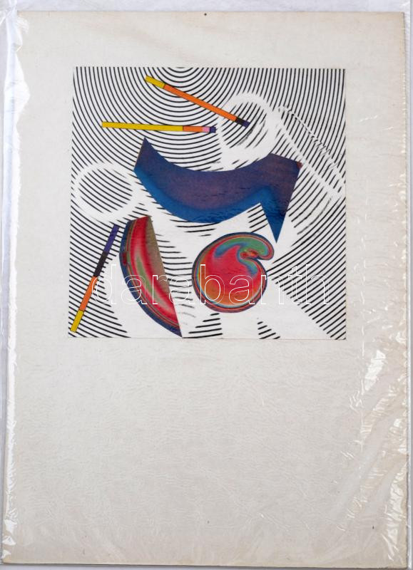 Leírás: Jelzés nélkül: Absztrakt, kollázs, papír, 14.5x14.5 cm