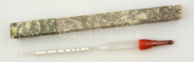 Szeszfokmérő, saját dobozában, h: 28 cm