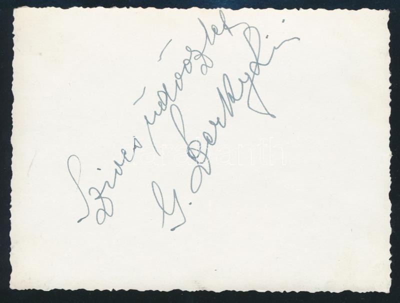 Leírás: Berky Lili (1886-1958) magyar színésznő aláírása az őt és Gózon Gyulát ábrázoló fotó hátoldalán